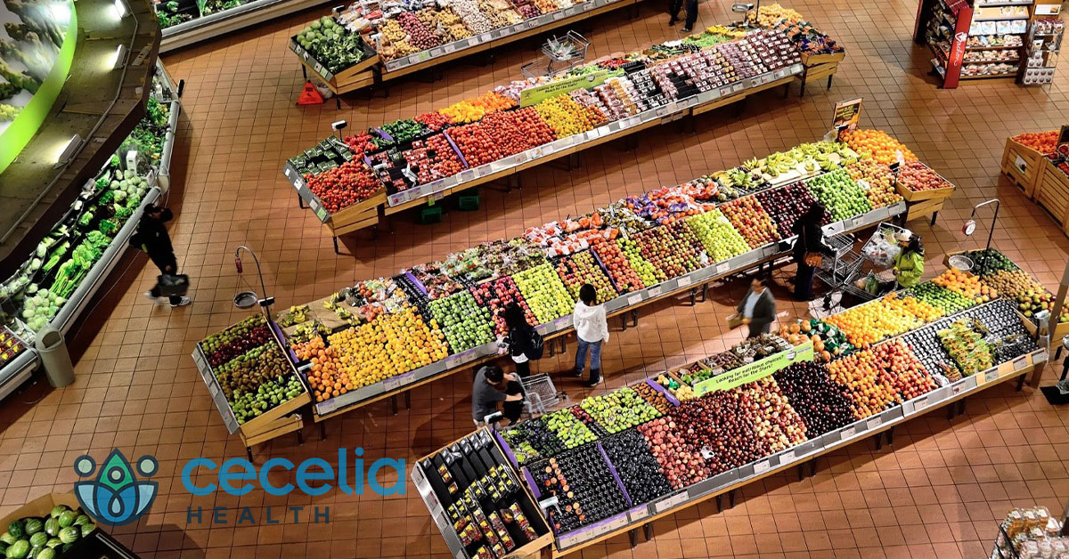 - Create a list and stick to it. Easier said than done, right? Although with enough intent and focus, this can be achieved. A key strategy to create a balanced list with a variety of healthful options is to do so before you leave for the store. If you are unsure where to begin in creating a balanced grocery list, consider reviewing this Cecelia Health blog on ten staples for your pantry or visiting this blog from the Academy of Nutrition and Dietetics on creating a grocery list. Another strategy to stick to your list is to mark items off as you put them into your cart. This can be done via pen and paper, removing an item from your electronic list, or placing a checkmark next to the grocery item on an electronic device.